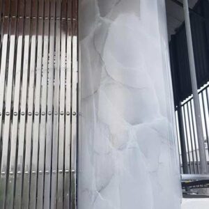 Sự kết hợp tinh tế giữa nền trắng sáng và vân đá xám nhẹ nhàng – rất được ưa chuộng cho cột biệt thự, sảnh lớn và phòng khách.
